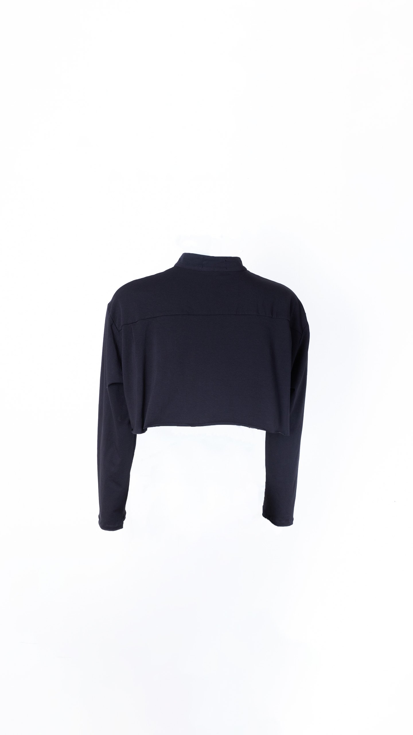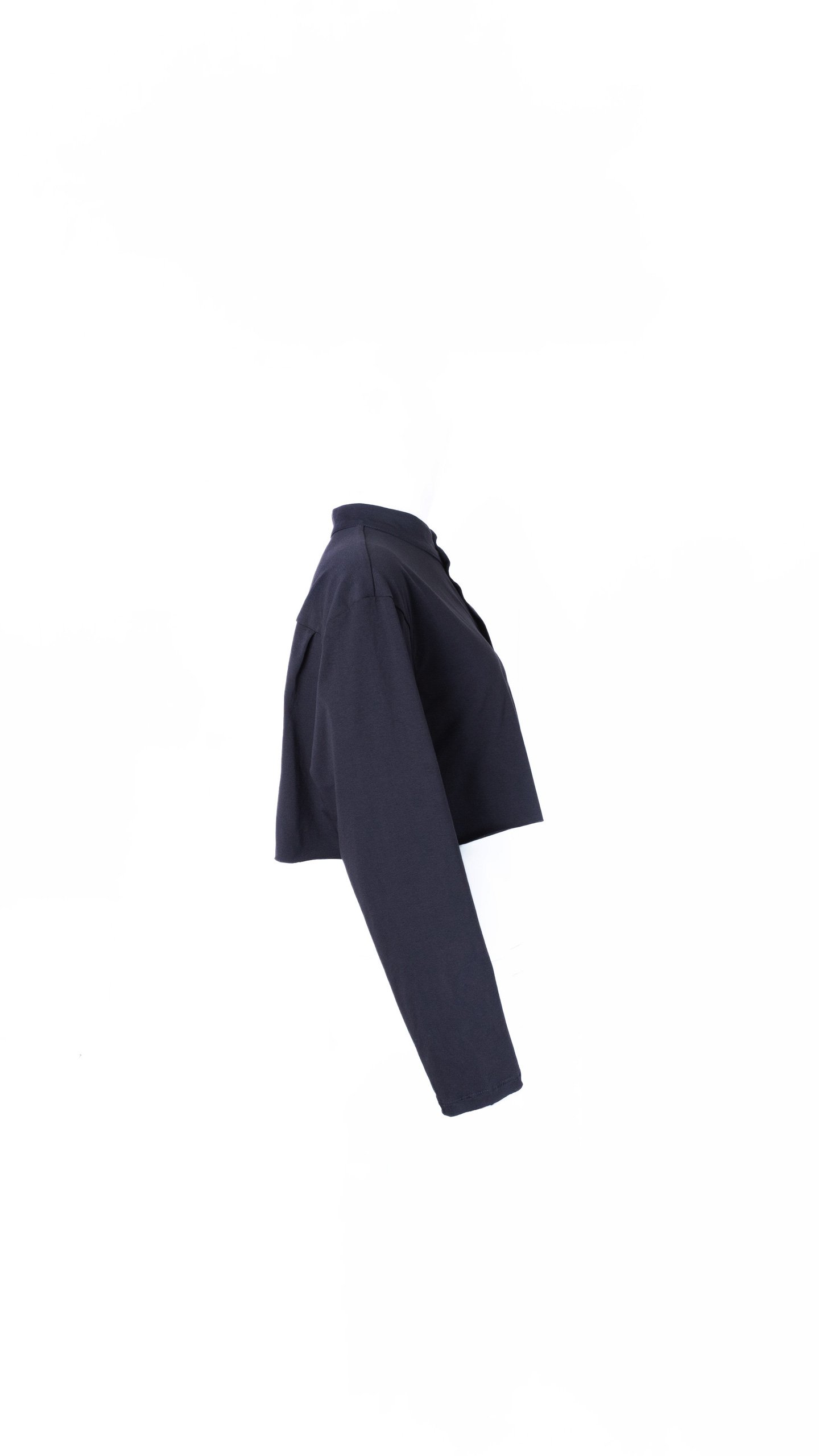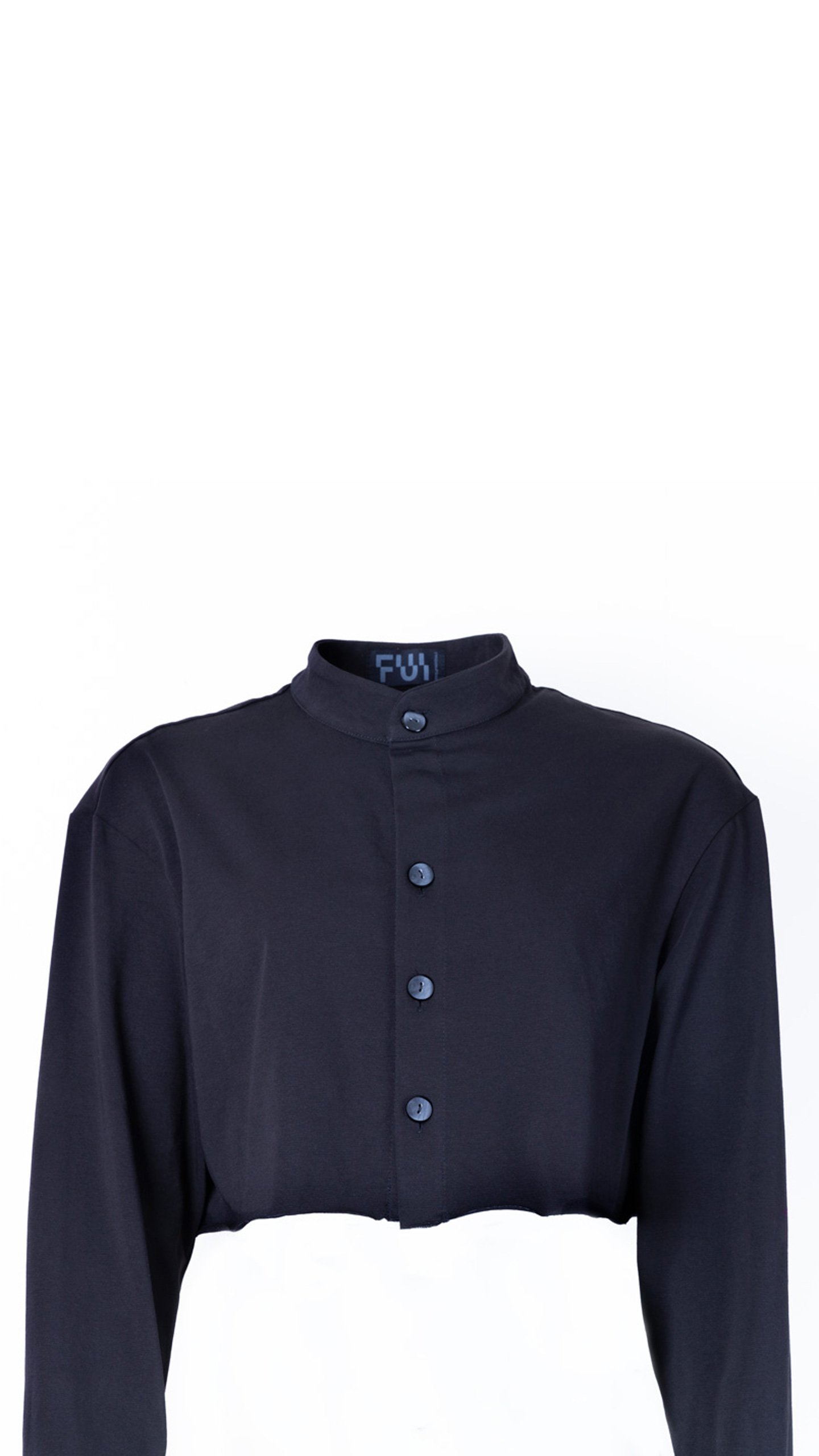 Button up shirt , inspired by a boxy men shirt, cropped with raw edges.